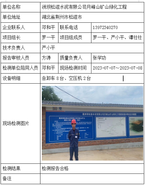洲坝松滋水泥有限公司月峰山矿山绿化工程2026/04/032023年检测检验项目 00 上一篇: 鄂州市鸿福实业有限责任公司下一篇: 湖北钟祥喜人化工有限公司 相关推荐 黄梅龙源石膏有限公司 2026/04/13 2 查看全文 安徽中掘建设工程有限公司武穴分公司 2026/04/13 1 查看全文 华新骨料(阳新)有限公司 2026/04/13 2 查看全文 钟祥市秦冲磷矿刘冲采区 2026/04/13 2 查看全文 您好!请登录 点击取消回复 称呼: 邮箱: 点击这里取消回复。