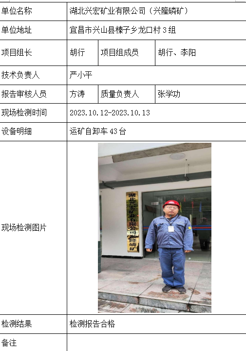 湖北兴宏矿业有限公司(兴隆磷矿)2026/04/032023年检测检验项目 00 上一篇: 湖北兴发化工集团股份有限公司(瓦屋IV矿段磷矿)下一篇: 湖北兴宏矿业有限公司(兴昌磷矿) 相关推荐 黄梅龙源石膏有限公司 2026/04/13 2 查看全文 安徽中掘建设工程有限公司武穴分公司 2026/04/13 1 查看全文 华新骨料(阳新)有限公司 2026/04/13 2 查看全文 钟祥市秦冲磷矿刘冲采区 2026/04/13 2 查看全文 您好!请登录 点击取消回复 称呼: 邮箱: 点击这里取消回复。