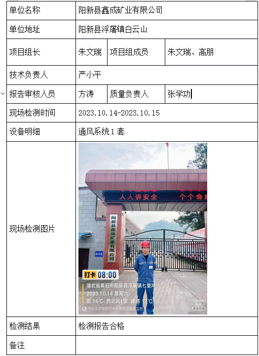 阳新县鑫成矿业有限公司2026/04/032023年检测检验项目 00 上一篇: 湖北兴宏矿业有限公司(兴昌磷矿)下一篇: 黄石帝州矿业公司阳新银山铅锌矿(湖北帝洲矿物科技股份有限公司) 相关推荐 黄梅龙源石膏有限公司 2026/04/13 2 查看全文 安徽中掘建设工程有限公司武穴分公司 2026/04/13 1 查看全文 华新骨料(阳新)有限公司 2026/04/13 2 查看全文 钟祥市秦冲磷矿刘冲采区 2026/04/13 2 查看全文 您好!请登录 点击取消回复 称呼: 邮箱: 点击这里取消回复。