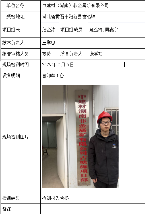中建材(湖南)非金属矿有限公司2026/04/072026年检测检验项目 20 上一篇: 大冶市金成矿业有限责任公司李万隆铁矿下一篇: 阳新县大林山矿业有限公司 相关推荐 吉安市青原区茶家山采石场(普通合伙) 2026/04/09 6 查看全文 阳新县宏达矿业有限责任公司 2026/04/08 4 查看全文 湖北兴发化工集团股份有限公司兴-神磷矿瓦屋矿区IV矿段 2026/04/08 4 查看全文 湖北冯家山矿业有限责任公司 2026/04/08 5 查看全文 您好!请登录 点击取消回复 称呼: 邮箱: 点击这里取消回复。