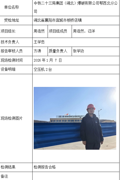 中铁二十三局集团(湖北)爆破有限公司鄂西北分公司2026/04/072026年检测检验项目 00 上一篇: 阳新县鑫晟矿业有限公司下一篇: 湖北兴宏矿业有限公司兴隆磷矿 相关推荐 吉安市青原区茶家山采石场(普通合伙) 2026/04/09 0 查看全文 阳新县宏达矿业有限责任公司 2026/04/08 0 查看全文 湖北兴发化工集团股份有限公司兴-神磷矿瓦屋矿区IV矿段 2026/04/08 0 查看全文 湖北冯家山矿业有限责任公司 2026/04/08 0 查看全文 您好!请登录 点击取消回复 称呼: 邮箱: 点击这里取消回复。
