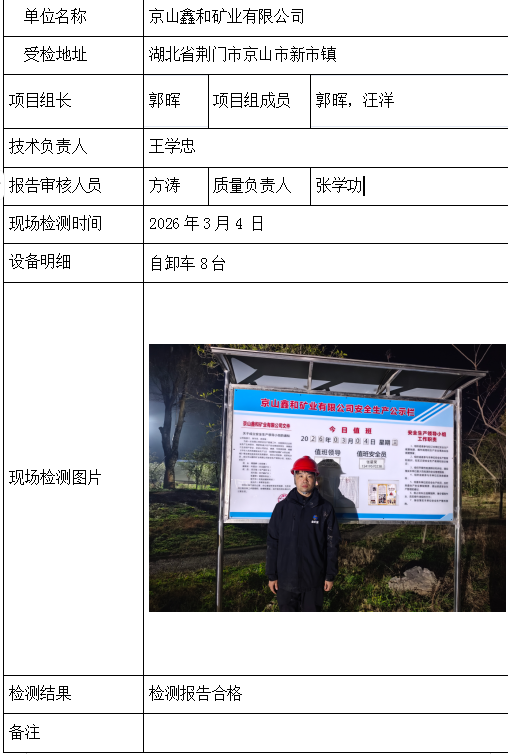 京山鑫和矿业有限公司2026/04/072026年检测检验项目 00 上一篇: 北方爆破科技有限公司阳新分公司下一篇: 鄂州市胜灵矿业有限责任公司 相关推荐 吉安市青原区茶家山采石场(普通合伙) 2026/04/09 3 查看全文 阳新县宏达矿业有限责任公司 2026/04/08 1 查看全文 湖北兴发化工集团股份有限公司兴-神磷矿瓦屋矿区IV矿段 2026/04/08 1 查看全文 湖北冯家山矿业有限责任公司 2026/04/08 1 查看全文 您好!请登录 点击取消回复 称呼: 邮箱: 点击这里取消回复。