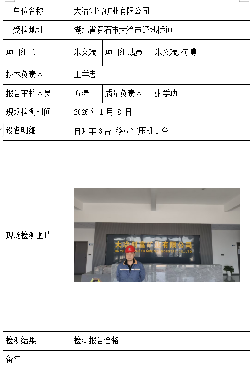 大冶创富矿业有限公司2026/04/072026年检测检验项目 10 上一篇: 湖北兴宏矿业有限公司兴隆磷矿下一篇: 湖北神农磷业科技股份有限公司寨湾磷矿 相关推荐 吉安市青原区茶家山采石场(普通合伙) 2026/04/09 3 查看全文 阳新县宏达矿业有限责任公司 2026/04/08 1 查看全文 湖北兴发化工集团股份有限公司兴-神磷矿瓦屋矿区IV矿段 2026/04/08 1 查看全文 湖北冯家山矿业有限责任公司 2026/04/08 3 查看全文 您好!请登录 点击取消回复 称呼: 邮箱: 点击这里取消回复。