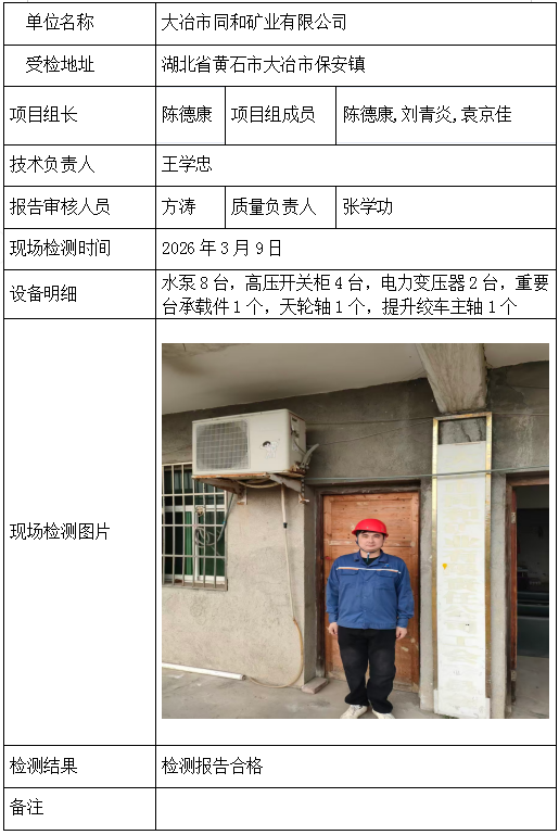 大冶市同和矿业有限公司2026/04/072026年检测检验项目 00 上一篇: 湖北兴顺新材料有限公司后坪磷矿下一篇: 湖北华灵矿业集团有限公司普庆铁矿 相关推荐 吉安市青原区茶家山采石场(普通合伙) 2026/04/09 3 查看全文 阳新县宏达矿业有限责任公司 2026/04/08 1 查看全文 湖北兴发化工集团股份有限公司兴-神磷矿瓦屋矿区IV矿段 2026/04/08 1 查看全文 湖北冯家山矿业有限责任公司 2026/04/08 1 查看全文 您好!请登录 点击取消回复 称呼: 邮箱: 点击这里取消回复。