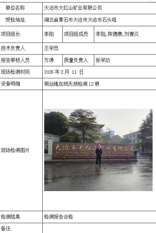大冶市大红山矿业有限公司2026/04/072026年检测检验项目 00 上一篇: 武钢资源集团大冶铁矿有限公司下一篇: 远安县燎原矿业有限责任公司 相关推荐 吉安市青原区茶家山采石场(普通合伙) 2026/04/09 3 查看全文 阳新县宏达矿业有限责任公司 2026/04/08 1 查看全文 湖北兴发化工集团股份有限公司兴-神磷矿瓦屋矿区IV矿段 2026/04/08 1 查看全文 湖北冯家山矿业有限责任公司 2026/04/08 1 查看全文 您好!请登录 点击取消回复 称呼: 邮箱: 点击这里取消回复。