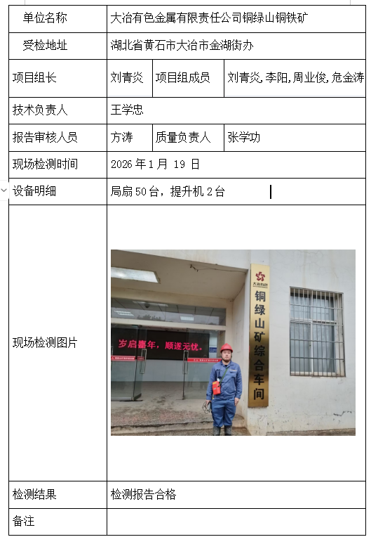 大冶有色金属有限责任公司铜绿山铜铁矿2026/04/072026年检测检验项目 00 上一篇: 永丰县佐龙铁矿下一篇: 阳新县三江矿业有限责任公司 相关推荐 吉安市青原区茶家山采石场(普通合伙) 2026/04/09 0 查看全文 阳新县宏达矿业有限责任公司 2026/04/08 0 查看全文 湖北兴发化工集团股份有限公司兴-神磷矿瓦屋矿区IV矿段 2026/04/08 0 查看全文 湖北冯家山矿业有限责任公司 2026/04/08 0 查看全文 您好!请登录 点击取消回复 称呼: 邮箱: 点击这里取消回复。