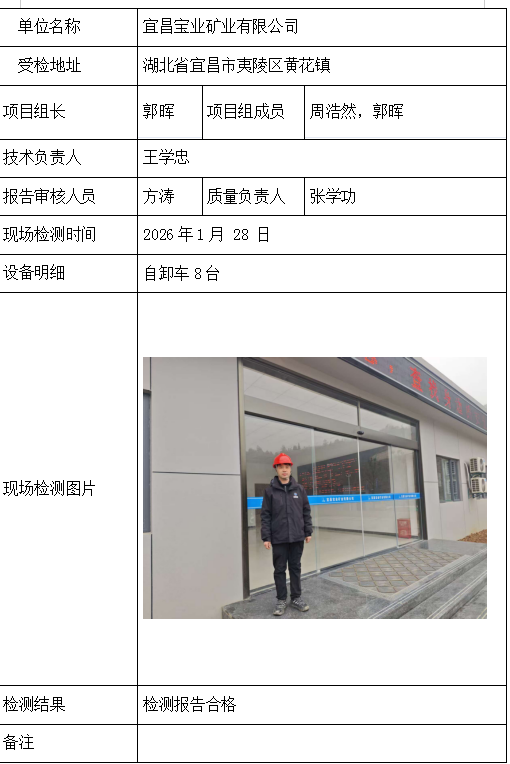 宜昌宝业矿业有限公司2026/04/072026年检测检验项目 00 上一篇: 国闰建设集团有限公司樟村坪分公司下一篇: 大冶有色金属有限责任公司铜绿山铜铁矿 相关推荐 吉安市青原区茶家山采石场(普通合伙) 2026/04/09 6 查看全文 阳新县宏达矿业有限责任公司 2026/04/08 4 查看全文 湖北兴发化工集团股份有限公司兴-神磷矿瓦屋矿区IV矿段 2026/04/08 4 查看全文 湖北冯家山矿业有限责任公司 2026/04/08 5 查看全文 您好!请登录 点击取消回复 称呼: 邮箱: 点击这里取消回复。