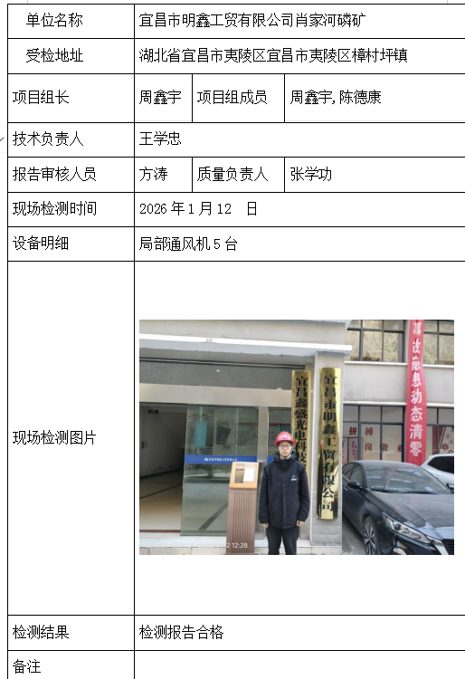 宜昌市明鑫工贸有限公司肖家河磷矿2026/04/072026年检测检验项目 00 上一篇: 大冶市铜山铜铁矿(普通合伙)下一篇: 湖北双鑫矿业有限责任公司黑龙潭金矿 相关推荐 吉安市青原区茶家山采石场(普通合伙) 2026/04/09 0 查看全文 阳新县宏达矿业有限责任公司 2026/04/08 0 查看全文 湖北兴发化工集团股份有限公司兴-神磷矿瓦屋矿区IV矿段 2026/04/08 0 查看全文 湖北冯家山矿业有限责任公司 2026/04/08 0 查看全文 您好!请登录 点击取消回复 称呼: 邮箱: 点击这里取消回复。
