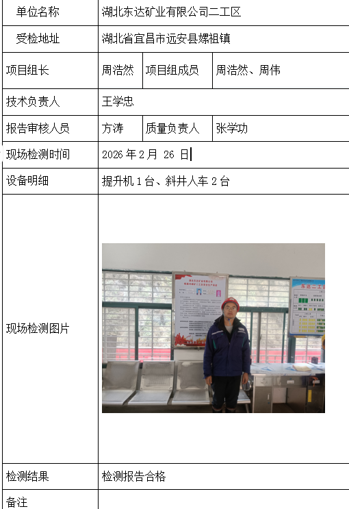 湖北东达矿业有限公司二工区2026/04/072026年检测检验项目 00 上一篇: 阳新县鑫华矿业有限公司赵家湾铜矿下一篇: 大冶市铜山铜铁矿(普通合伙) 相关推荐 吉安市青原区茶家山采石场(普通合伙) 2026/04/09 3 查看全文 阳新县宏达矿业有限责任公司 2026/04/08 1 查看全文 湖北兴发化工集团股份有限公司兴-神磷矿瓦屋矿区IV矿段 2026/04/08 1 查看全文 湖北冯家山矿业有限责任公司 2026/04/08 1 查看全文 您好!请登录 点击取消回复 称呼: 邮箱: 点击这里取消回复。