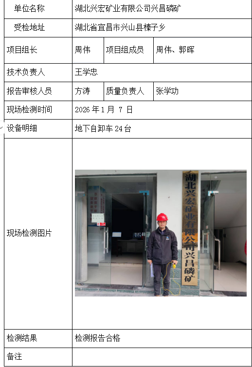 湖北兴宏矿业有限公司兴昌磷矿2026/04/072026年检测检验项目 00 上一篇: 阳新县三江矿业有限责任公司下一篇: 阳新县鑫晟矿业有限公司 相关推荐 吉安市青原区茶家山采石场(普通合伙) 2026/04/09 0 查看全文 阳新县宏达矿业有限责任公司 2026/04/08 0 查看全文 湖北兴发化工集团股份有限公司兴-神磷矿瓦屋矿区IV矿段 2026/04/08 0 查看全文 湖北冯家山矿业有限责任公司 2026/04/08 0 查看全文 您好!请登录 点击取消回复 称呼: 邮箱: 点击这里取消回复。