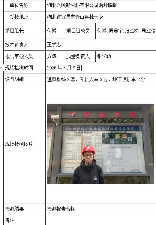湖北兴顺新材料有限公司后坪磷矿2026/04/072026年检测检验项目 00 上一篇: 湖北东达矿业有限公司下一篇: 大冶市同和矿业有限公司 相关推荐 吉安市青原区茶家山采石场(普通合伙) 2026/04/09 3 查看全文 阳新县宏达矿业有限责任公司 2026/04/08 1 查看全文 湖北兴发化工集团股份有限公司兴-神磷矿瓦屋矿区IV矿段 2026/04/08 1 查看全文 湖北冯家山矿业有限责任公司 2026/04/08 1 查看全文 您好!请登录 点击取消回复 称呼: 邮箱: 点击这里取消回复。