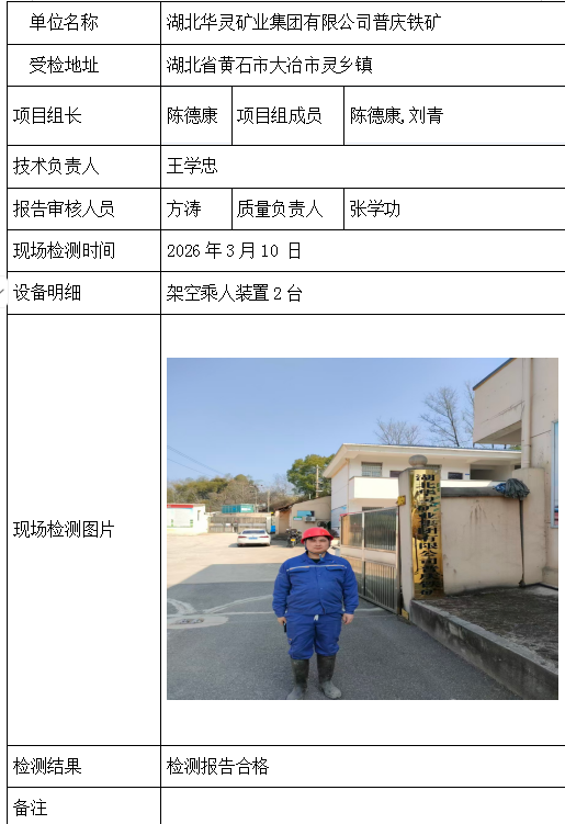 湖北华灵矿业集团有限公司普庆铁矿2026/04/072026年检测检验项目 00 上一篇: 大冶市同和矿业有限公司下一篇: 黄石市陈贵铜山口矿业股份有限公司张泗朱铁矿 相关推荐 吉安市青原区茶家山采石场(普通合伙) 2026/04/09 3 查看全文 阳新县宏达矿业有限责任公司 2026/04/08 1 查看全文 湖北兴发化工集团股份有限公司兴-神磷矿瓦屋矿区IV矿段 2026/04/08 1 查看全文 湖北冯家山矿业有限责任公司 2026/04/08 1 查看全文 您好!请登录 点击取消回复 称呼: 邮箱: 点击这里取消回复。