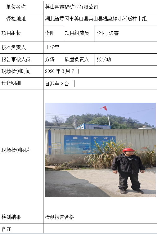英山县鑫福矿业有限公司2026/04/072026年检测检验项目 00 上一篇: 阳新县白沙镇枫树下村铜矿下一篇: 神农架武山矿业有限责任公司 相关推荐 吉安市青原区茶家山采石场(普通合伙) 2026/04/09 3 查看全文 阳新县宏达矿业有限责任公司 2026/04/08 1 查看全文 湖北兴发化工集团股份有限公司兴-神磷矿瓦屋矿区IV矿段 2026/04/08 1 查看全文 湖北冯家山矿业有限责任公司 2026/04/08 1 查看全文 您好!请登录 点击取消回复 称呼: 邮箱: 点击这里取消回复。