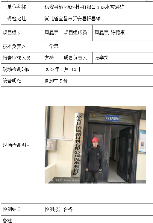 远安县栖凤新材料有限公司泥水灰岩矿2026/04/072026年检测检验项目 00 上一篇: 湖北双鑫矿业有限责任公司黑龙潭金矿下一篇: 远安县燎原矿业有限责任公司 相关推荐 吉安市青原区茶家山采石场(普通合伙) 2026/04/09 1 查看全文 阳新县宏达矿业有限责任公司 2026/04/08 0 查看全文 湖北兴发化工集团股份有限公司兴-神磷矿瓦屋矿区IV矿段 2026/04/08 0 查看全文 湖北冯家山矿业有限责任公司 2026/04/08 0 查看全文 您好!请登录 点击取消回复 称呼: 邮箱: 点击这里取消回复。