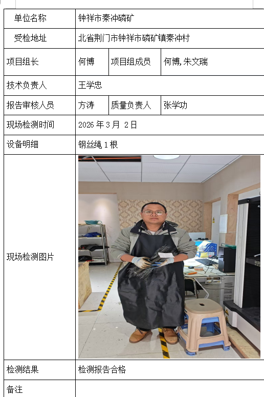 钟祥市秦冲磷矿2026/04/072026年检测检验项目 00 上一篇: 大冶市铜山铜铁矿(普通合伙)下一篇: 随州市钰丰矿业有限公司 相关推荐 吉安市青原区茶家山采石场(普通合伙) 2026/04/09 3 查看全文 阳新县宏达矿业有限责任公司 2026/04/08 1 查看全文 湖北兴发化工集团股份有限公司兴-神磷矿瓦屋矿区IV矿段 2026/04/08 1 查看全文 湖北冯家山矿业有限责任公司 2026/04/08 1 查看全文 您好!请登录 点击取消回复 称呼: 邮箱: 点击这里取消回复。