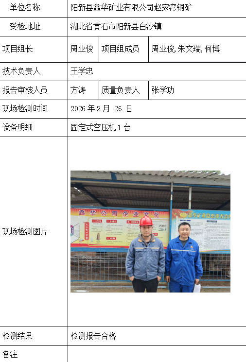 阳新县鑫华矿业有限公司赵家湾铜矿2026/04/072026年检测检验项目 00 上一篇: 湖南涟邵建设工程(集团)第一安装工程有限公司下一篇: 湖北东达矿业有限公司二工区 相关推荐 吉安市青原区茶家山采石场(普通合伙) 2026/04/09 3 查看全文 阳新县宏达矿业有限责任公司 2026/04/08 1 查看全文 湖北兴发化工集团股份有限公司兴-神磷矿瓦屋矿区IV矿段 2026/04/08 1 查看全文 湖北冯家山矿业有限责任公司 2026/04/08 1 查看全文 您好!请登录 点击取消回复 称呼: 邮箱: 点击这里取消回复。