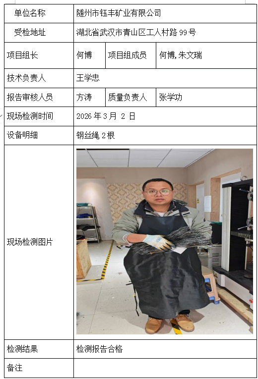 随州市钰丰矿业有限公司2026/04/072026年检测检验项目 00 上一篇: 钟祥市秦冲磷矿下一篇: 湖北敏蕊劳务有限公司 相关推荐 吉安市青原区茶家山采石场(普通合伙) 2026/04/09 3 查看全文 阳新县宏达矿业有限责任公司 2026/04/08 1 查看全文 湖北兴发化工集团股份有限公司兴-神磷矿瓦屋矿区IV矿段 2026/04/08 1 查看全文 湖北冯家山矿业有限责任公司 2026/04/08 1 查看全文 您好!请登录 点击取消回复 称呼: 邮箱: 点击这里取消回复。