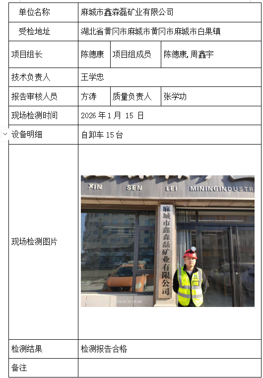 麻城市鑫森磊矿业有限公司2026/04/072026年检测检验项目 00 上一篇: 保康楚烽化工有限责任公司(楚烽磷矿)下一篇: 遂川县泉江镇麻岭采石场 相关推荐 吉安市青原区茶家山采石场(普通合伙) 2026/04/09 1 查看全文 阳新县宏达矿业有限责任公司 2026/04/08 0 查看全文 湖北兴发化工集团股份有限公司兴-神磷矿瓦屋矿区IV矿段 2026/04/08 0 查看全文 湖北冯家山矿业有限责任公司 2026/04/08 0 查看全文 您好!请登录 点击取消回复 称呼: 邮箱: 点击这里取消回复。