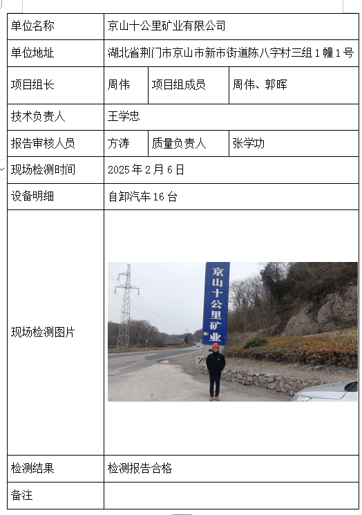 京山十公里矿业有限公司2026/04/082025年检测检验项目 20 上一篇: 武汉宏信矿冶科工集团有限公司下一篇: 京山泽源矿业有限公司 相关推荐 长阳县勒石包方解石矿 2026/04/10 7 查看全文 大冶市灵乡正旺铁矿二采区 2026/04/10 4 查看全文 大冶市陈贵安船矿业有限公司 2026/04/10 9 查看全文 保康楚烽化工有限责任公司(楚烽磷矿) 2026/04/10 6 查看全文 您好!请登录 点击取消回复 称呼: 邮箱: 点击这里取消回复。