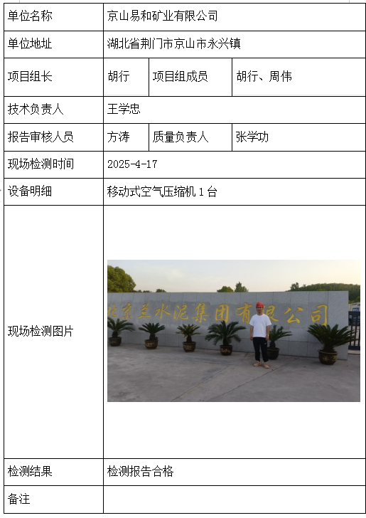 京山易和矿业有限公司2026/04/082025年检测检验项目 20 上一篇: 湖北京兰水泥集团有限公司下一篇: 大冶市铜山铜铁矿(普通合伙) 相关推荐 长阳县勒石包方解石矿 2026/04/10 7 查看全文 大冶市灵乡正旺铁矿二采区 2026/04/10 4 查看全文 大冶市陈贵安船矿业有限公司 2026/04/10 9 查看全文 保康楚烽化工有限责任公司(楚烽磷矿) 2026/04/10 6 查看全文 您好!请登录 点击取消回复 称呼: 邮箱: 点击这里取消回复。