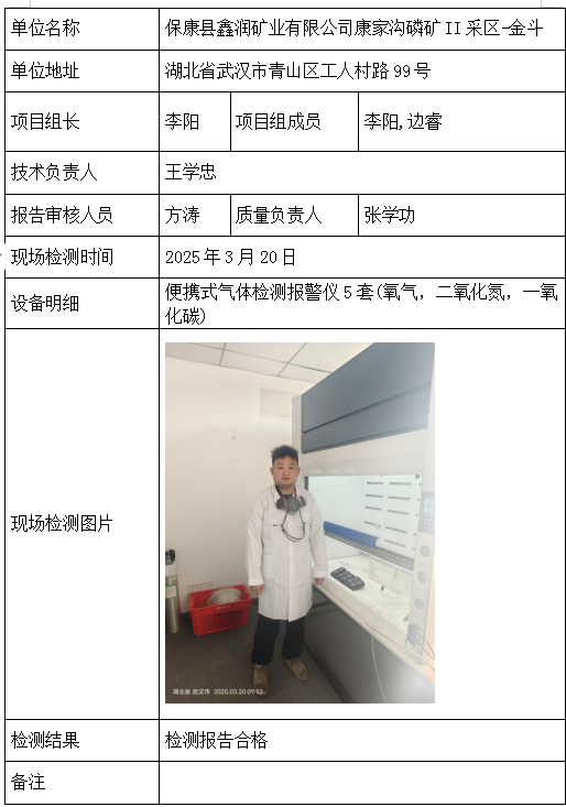 保康县鑫润矿业有限公司康家沟磷矿II采区-金斗2026/04/082025年检测检验项目 20 上一篇: 保康县鑫润矿业有限公司康家沟磷矿II采区-尧治河下一篇: 来凤锦龙实业有限公司 相关推荐 长阳县勒石包方解石矿 2026/04/10 7 查看全文 大冶市灵乡正旺铁矿二采区 2026/04/10 4 查看全文 大冶市陈贵安船矿业有限公司 2026/04/10 9 查看全文 保康楚烽化工有限责任公司(楚烽磷矿) 2026/04/10 6 查看全文 您好!请登录 点击取消回复 称呼: 邮箱: 点击这里取消回复。