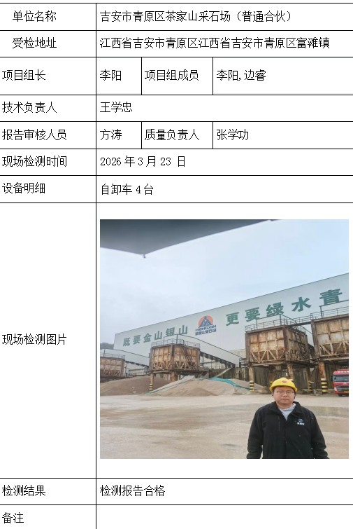 吉安市青原区茶家山采石场(普通合伙)2026/04/082026年检测检验项目 30 上一篇: 大冶有色金属有限责任公司铜绿山铜铁矿下一篇: 中铁十九局集团有限公司黄石市秀山矿区石灰岩矿开采加工承包项目经理部 相关推荐 宜昌兴臣爆破工程有限公司南沟磷矿项目部 2026/04/17 0 查看全文 湖北三鑫金铜股份有限公司 2026/04/17 0 查看全文 湖北信佳建设工程有限公司驻大杉树磷矿项目部 2026/04/17 0 查看全文 湖北三宁矿业有限公司挑水河磷矿东部矿段909工区 2026/04/17 0 查看全文 您好!请登录 点击取消回复 称呼: 邮箱: 点击这里取消回复。