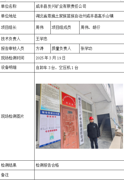 咸丰县发兴矿业有限责任公司2026/04/082025年检测检验项目 20 上一篇: 中建材(湖南)非金属矿有限公司下一篇: 保康县鑫润矿业有限公司康家沟磷矿II采区-尧治河 相关推荐 长阳县勒石包方解石矿 2026/04/10 7 查看全文 大冶市灵乡正旺铁矿二采区 2026/04/10 4 查看全文 大冶市陈贵安船矿业有限公司 2026/04/10 9 查看全文 保康楚烽化工有限责任公司(楚烽磷矿) 2026/04/10 6 查看全文 您好!请登录 点击取消回复 称呼: 邮箱: 点击这里取消回复。