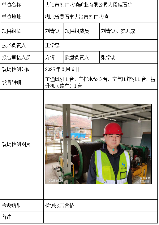 大冶市刘仁八镇矿业有限公司大段硅石矿2026/04/082025年检测检验项目 20 上一篇: 京山市永兴正宇采石厂下一篇: 安徽中掘建设工程有限公司 相关推荐 长阳县勒石包方解石矿 2026/04/10 7 查看全文 大冶市灵乡正旺铁矿二采区 2026/04/10 4 查看全文 大冶市陈贵安船矿业有限公司 2026/04/10 9 查看全文 保康楚烽化工有限责任公司(楚烽磷矿) 2026/04/10 6 查看全文 您好!请登录 点击取消回复 称呼: 邮箱: 点击这里取消回复。