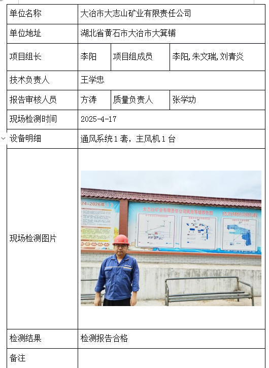 大冶市大志山矿业有限责任公司2026/04/082025年检测检验项目 20 上一篇: 荆门市放马山中磷矿业有限公司下一篇: 京山市岩峰寺石料有限公司 相关推荐 长阳县勒石包方解石矿 2026/04/10 7 查看全文 大冶市灵乡正旺铁矿二采区 2026/04/10 4 查看全文 大冶市陈贵安船矿业有限公司 2026/04/10 9 查看全文 保康楚烽化工有限责任公司(楚烽磷矿) 2026/04/10 6 查看全文 您好!请登录 点击取消回复 称呼: 邮箱: 点击这里取消回复。