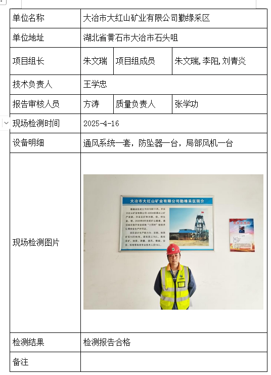 大冶市大红山矿业有限公司勤缘采区2026/04/082025年检测检验项目 30 上一篇: 宜昌宝石山矿业有限公司董家河磷矿下一篇: 荆门市放马山中磷矿业有限公司 相关推荐 长阳县勒石包方解石矿 2026/04/10 7 查看全文 大冶市灵乡正旺铁矿二采区 2026/04/10 4 查看全文 大冶市陈贵安船矿业有限公司 2026/04/10 9 查看全文 保康楚烽化工有限责任公司(楚烽磷矿) 2026/04/10 6 查看全文 您好!请登录 点击取消回复 称呼: 邮箱: 点击这里取消回复。