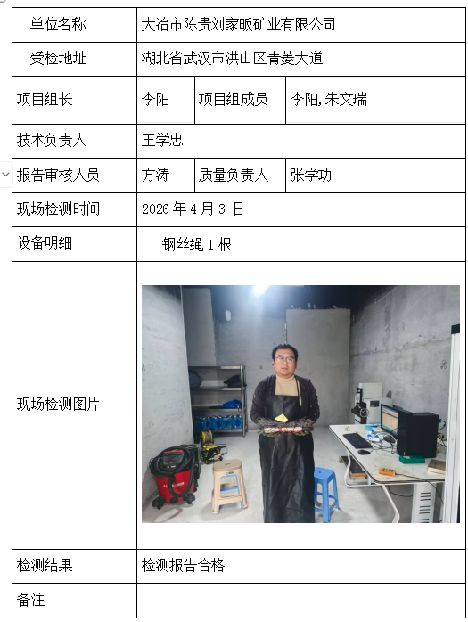 大冶市陈贵刘家畈矿业有限公司2026/04/082026年检测检验项目 30 上一篇: 武钢资源集团大冶铁矿有限公司下一篇: 重庆川九矿山建设有限公司大峪口项目部 相关推荐 吉安市青原区茶家山采石场(普通合伙) 2026/04/09 6 查看全文 阳新县宏达矿业有限责任公司 2026/04/08 4 查看全文 湖北兴发化工集团股份有限公司兴-神磷矿瓦屋矿区IV矿段 2026/04/08 4 查看全文 湖北冯家山矿业有限责任公司 2026/04/08 5 查看全文 您好!请登录 点击取消回复 称呼: 邮箱: 点击这里取消回复。