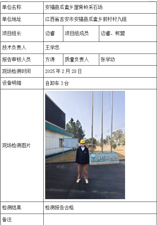 安福县瓜畲乡屋背岭采石场2026/04/082025年检测检验项目 30 上一篇: 湖北三宁矿业有限公司挑水河磷矿东部矿段909工区下一篇: 遂川县西溪乡西溪采石场 相关推荐 长阳县勒石包方解石矿 2026/04/10 7 查看全文 大冶市灵乡正旺铁矿二采区 2026/04/10 4 查看全文 大冶市陈贵安船矿业有限公司 2026/04/10 9 查看全文 保康楚烽化工有限责任公司(楚烽磷矿) 2026/04/10 6 查看全文 您好!请登录 点击取消回复 称呼: 邮箱: 点击这里取消回复。