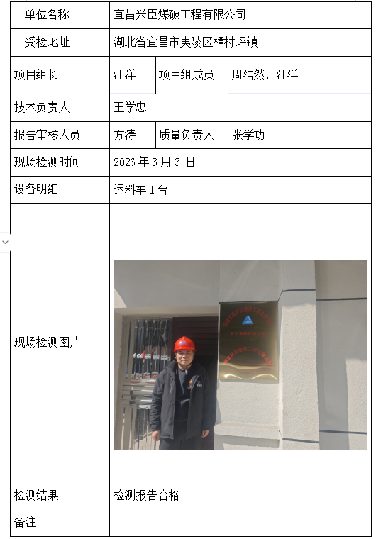 宜昌兴臣爆破工程有限公司2026/04/082026年检测检验项目 00 上一篇: 国闰建设集团有限公司樟村坪分公司下一篇: 保康堰垭洋丰磷化有限公司大杉树磷矿 相关推荐 吉安市青原区茶家山采石场(普通合伙) 2026/04/09 3 查看全文 阳新县宏达矿业有限责任公司 2026/04/08 1 查看全文 湖北兴发化工集团股份有限公司兴-神磷矿瓦屋矿区IV矿段 2026/04/08 1 查看全文 湖北冯家山矿业有限责任公司 2026/04/08 1 查看全文 您好!请登录 点击取消回复 称呼: 邮箱: 点击这里取消回复。