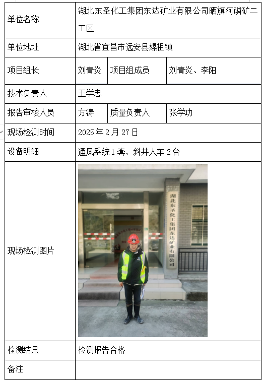湖北东圣化工集团东达矿业有限公司晒旗河磷矿二工区2026/04/082025年检测检验项目 20 上一篇: 武钢资源集团程潮矿业有限公司广山采区下一篇: 保康楚烽化工有限责任公司(楚烽磷矿) 相关推荐 长阳县勒石包方解石矿 2026/04/10 7 查看全文 大冶市灵乡正旺铁矿二采区 2026/04/10 4 查看全文 大冶市陈贵安船矿业有限公司 2026/04/10 9 查看全文 保康楚烽化工有限责任公司(楚烽磷矿) 2026/04/10 6 查看全文 您好!请登录 点击取消回复 称呼: 邮箱: 点击这里取消回复。