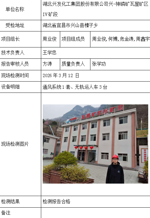 湖北兴发化工集团股份有限公司兴-神磷矿瓦屋矿区IV矿段2026/04/082026年检测检验项目 00 上一篇: 湖北兴宏矿业有限公司兴隆磷矿下一篇: 中海油化学宜昌矿业有限公司 相关推荐 吉安市青原区茶家山采石场(普通合伙) 2026/04/09 3 查看全文 阳新县宏达矿业有限责任公司 2026/04/08 1 查看全文 湖北兴发化工集团股份有限公司兴-神磷矿瓦屋矿区IV矿段 2026/04/08 1 查看全文 湖北冯家山矿业有限责任公司 2026/04/08 1 查看全文 您好!请登录 点击取消回复 称呼: 邮箱: 点击这里取消回复。
