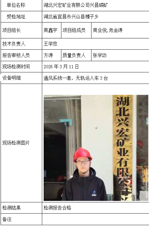 湖北兴宏矿业有限公司兴昌磷矿2026/04/082026年检测检验项目 00 上一篇: 湖北紫岗矿业有限公司下一篇: 京山县宋河镇马家冲碎石厂 相关推荐 吉安市青原区茶家山采石场(普通合伙) 2026/04/09 3 查看全文 阳新县宏达矿业有限责任公司 2026/04/08 1 查看全文 湖北兴发化工集团股份有限公司兴-神磷矿瓦屋矿区IV矿段 2026/04/08 1 查看全文 湖北冯家山矿业有限责任公司 2026/04/08 1 查看全文 您好!请登录 点击取消回复 称呼: 邮箱: 点击这里取消回复。