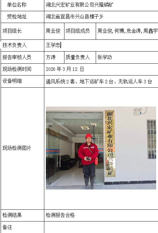 湖北兴宏矿业有限公司兴隆磷矿2026/04/082026年检测检验项目 00 上一篇: 阳新县宏达矿业有限责任公司下一篇: 湖北兴发化工集团股份有限公司兴-神磷矿瓦屋矿区IV矿段 相关推荐 吉安市青原区茶家山采石场(普通合伙) 2026/04/09 3 查看全文 阳新县宏达矿业有限责任公司 2026/04/08 1 查看全文 湖北兴发化工集团股份有限公司兴-神磷矿瓦屋矿区IV矿段 2026/04/08 1 查看全文 湖北冯家山矿业有限责任公司 2026/04/08 1 查看全文 您好!请登录 点击取消回复 称呼: 邮箱: 点击这里取消回复。