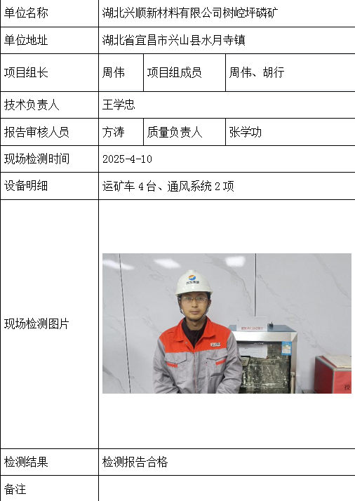 湖北兴顺新材料有限公司树崆坪磷矿2026/04/082025年检测检验项目 20 上一篇: 阳新县兴达矿业有限公司下一篇: 湖北龙蟒磷化工有限公司 相关推荐 长阳县勒石包方解石矿 2026/04/10 7 查看全文 大冶市灵乡正旺铁矿二采区 2026/04/10 4 查看全文 大冶市陈贵安船矿业有限公司 2026/04/10 9 查看全文 保康楚烽化工有限责任公司(楚烽磷矿) 2026/04/10 6 查看全文 您好!请登录 点击取消回复 称呼: 邮箱: 点击这里取消回复。