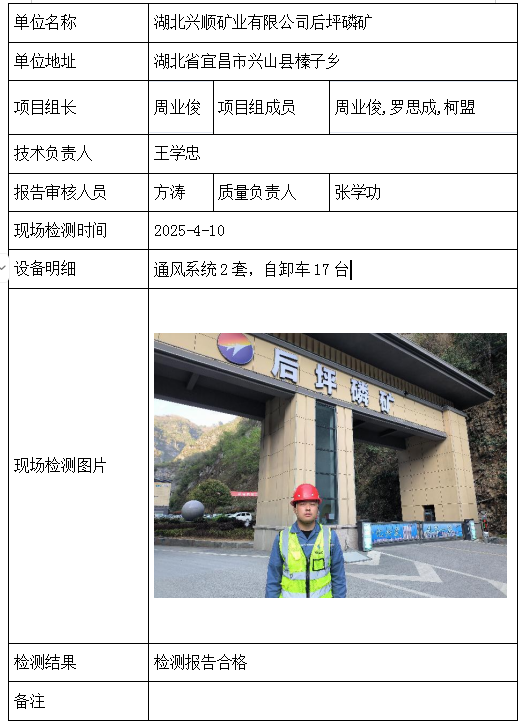 湖北兴顺矿业有限公司后坪磷矿2026/04/082025年检测检验项目 20 上一篇: 湖北神农磷业科技股份有限公司寨湾磷矿下一篇: 湖北神农磷业科技股份有限公司莲花-简城磷矿 相关推荐 长阳县勒石包方解石矿 2026/04/10 7 查看全文 大冶市灵乡正旺铁矿二采区 2026/04/10 4 查看全文 大冶市陈贵安船矿业有限公司 2026/04/10 9 查看全文 保康楚烽化工有限责任公司(楚烽磷矿) 2026/04/10 6 查看全文 您好!请登录 点击取消回复 称呼: 邮箱: 点击这里取消回复。