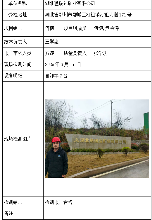 湖北通瑞达矿业有限公司2026/04/082026年检测检验项目 00 上一篇: 云南建投矿业工程有限公司下一篇: 鄂州市胜灵矿业有限责任公司 相关推荐 吉安市青原区茶家山采石场(普通合伙) 2026/04/09 3 查看全文 阳新县宏达矿业有限责任公司 2026/04/08 1 查看全文 湖北兴发化工集团股份有限公司兴-神磷矿瓦屋矿区IV矿段 2026/04/08 1 查看全文 湖北冯家山矿业有限责任公司 2026/04/08 1 查看全文 您好!请登录 点击取消回复 称呼: 邮箱: 点击这里取消回复。