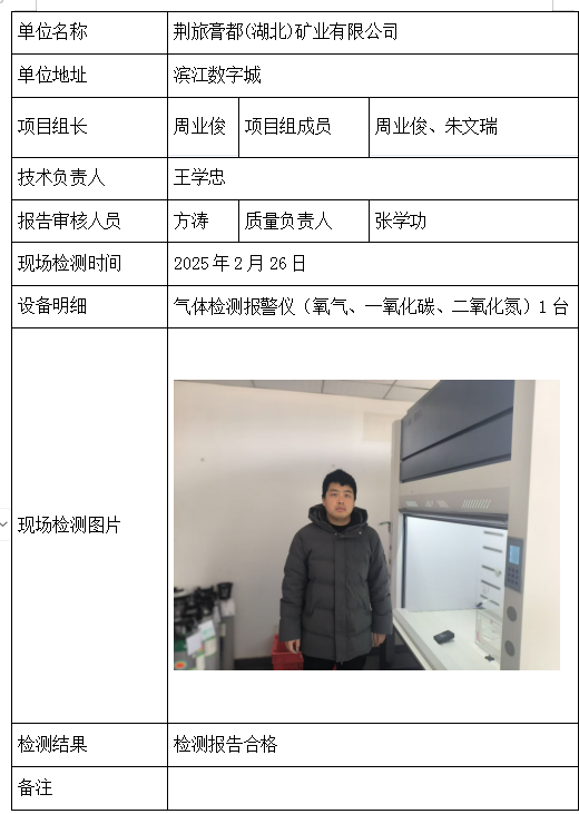 荆旅膏都(湖北)矿业有限公司2026/04/082025年检测检验项目 30 上一篇: 山东华鑫矿业工程有限公司下一篇: 保康堰垭洋丰磷化有限公司大杉树磷矿 相关推荐 长阳县勒石包方解石矿 2026/04/10 7 查看全文 大冶市灵乡正旺铁矿二采区 2026/04/10 4 查看全文 大冶市陈贵安船矿业有限公司 2026/04/10 9 查看全文 保康楚烽化工有限责任公司(楚烽磷矿) 2026/04/10 6 查看全文 您好!请登录 点击取消回复 称呼: 邮箱: 点击这里取消回复。