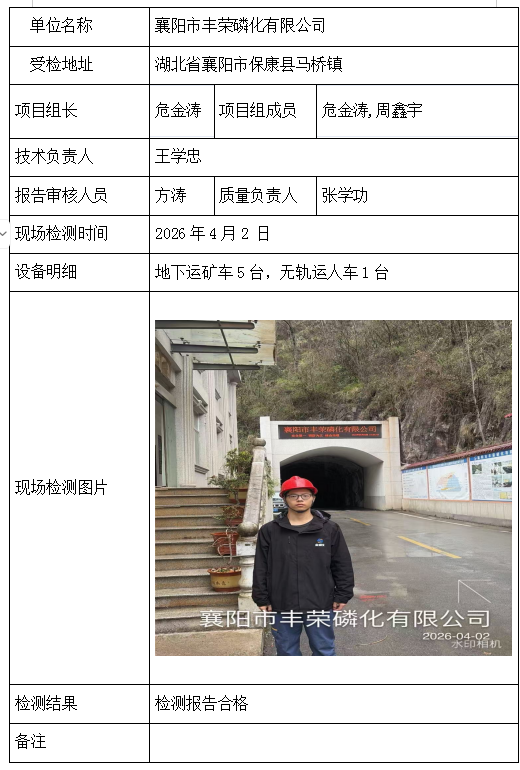 襄阳市丰荣磷化有限公司2026/04/082026年检测检验项目 00 上一篇: 湖北恒顺矿业有限责任公司下一篇: 武钢资源集团大冶铁矿有限公司 相关推荐 吉安市青原区茶家山采石场(普通合伙) 2026/04/09 3 查看全文 阳新县宏达矿业有限责任公司 2026/04/08 1 查看全文 湖北兴发化工集团股份有限公司兴-神磷矿瓦屋矿区IV矿段 2026/04/08 1 查看全文 湖北冯家山矿业有限责任公司 2026/04/08 3 查看全文 您好!请登录 点击取消回复 称呼: 邮箱: 点击这里取消回复。
