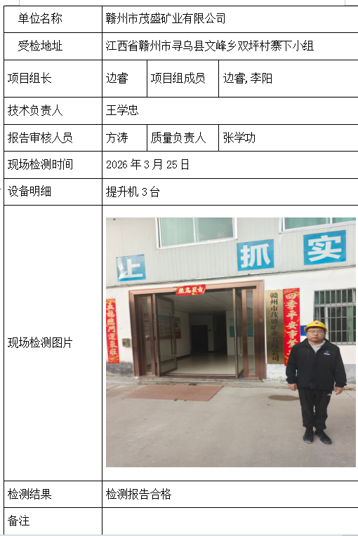 赣州市茂盛矿业有限公司2026/04/082026年检测检验项目 30 上一篇: 武钢资源集团程潮矿业有限公司龙起采区下一篇: 江西佰丰实业有限公司永丰县中村乡凤凰坑硅石矿 相关推荐 吉安市青原区茶家山采石场(普通合伙) 2026/04/09 6 查看全文 阳新县宏达矿业有限责任公司 2026/04/08 4 查看全文 湖北兴发化工集团股份有限公司兴-神磷矿瓦屋矿区IV矿段 2026/04/08 4 查看全文 湖北冯家山矿业有限责任公司 2026/04/08 5 查看全文 您好!请登录 点击取消回复 称呼: 邮箱: 点击这里取消回复。