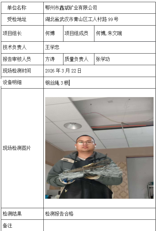 鄂州市鑫斌矿业有限公司2026/04/082026年检测检验项目 30 上一篇: 鄂州市鸿福实业有限责任公司下一篇: 大冶有色金属有限责任公司铜绿山铜铁矿 相关推荐 宜昌兴臣爆破工程有限公司南沟磷矿项目部 2026/04/17 0 查看全文 湖北三鑫金铜股份有限公司 2026/04/17 0 查看全文 湖北信佳建设工程有限公司驻大杉树磷矿项目部 2026/04/17 0 查看全文 湖北三宁矿业有限公司挑水河磷矿东部矿段909工区 2026/04/17 0 查看全文 您好!请登录 点击取消回复 称呼: 邮箱: 点击这里取消回复。