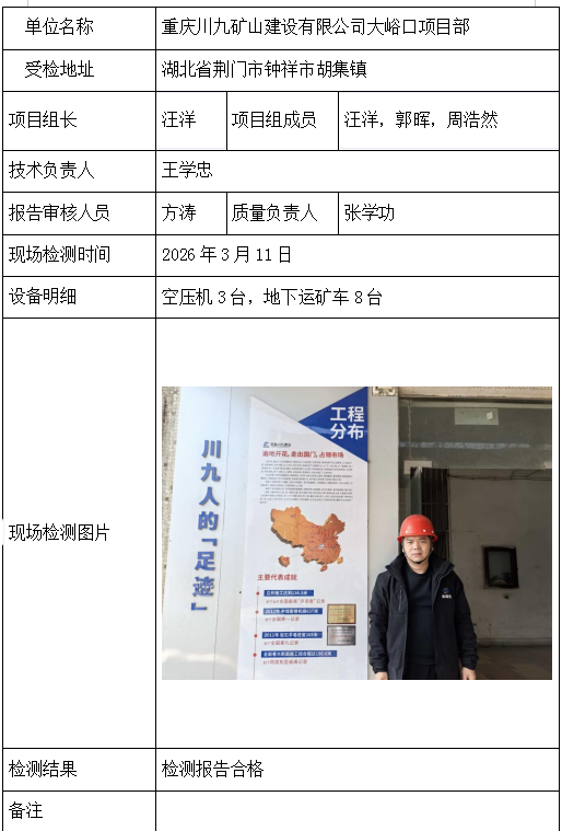 重庆川九矿山建设有限公司大峪口项目部2026/04/082026年检测检验项目 00 上一篇: 保康楚烽化工有限责任公司(楚烽磷矿)下一篇: 湖北紫岗矿业有限公司 相关推荐 吉安市青原区茶家山采石场(普通合伙) 2026/04/09 3 查看全文 阳新县宏达矿业有限责任公司 2026/04/08 1 查看全文 湖北兴发化工集团股份有限公司兴-神磷矿瓦屋矿区IV矿段 2026/04/08 1 查看全文 湖北冯家山矿业有限责任公司 2026/04/08 1 查看全文 您好!请登录 点击取消回复 称呼: 邮箱: 点击这里取消回复。