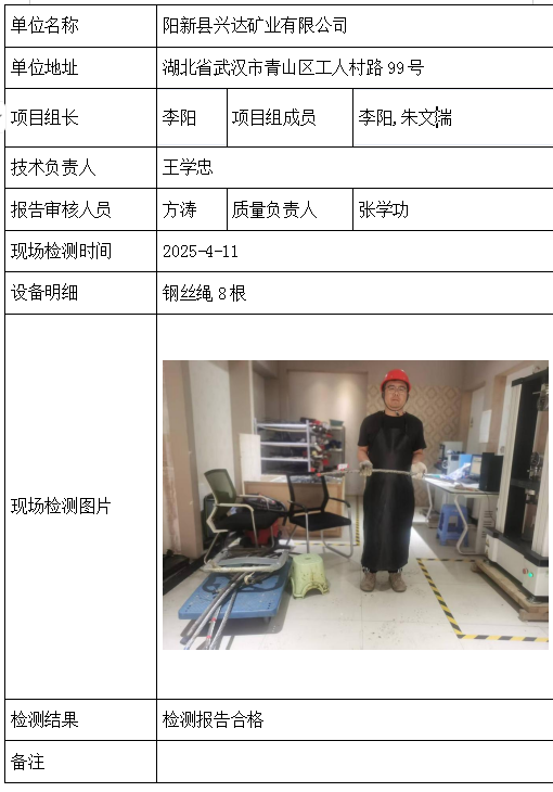 阳新县兴达矿业有限公司2026/04/082025年检测检验项目 20 上一篇: 湖北神农磷业科技股份有限公司莲花-简城磷矿下一篇: 湖北兴顺新材料有限公司树崆坪磷矿 相关推荐 长阳县勒石包方解石矿 2026/04/10 7 查看全文 大冶市灵乡正旺铁矿二采区 2026/04/10 4 查看全文 大冶市陈贵安船矿业有限公司 2026/04/10 9 查看全文 保康楚烽化工有限责任公司(楚烽磷矿) 2026/04/10 6 查看全文 您好!请登录 点击取消回复 称呼: 邮箱: 点击这里取消回复。