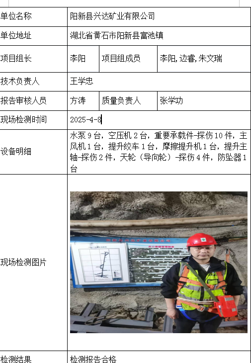 阳新县兴达矿业有限公司2026/04/082025年检测检验项目 20 上一篇: 华新水泥(鹤峰)民族建材有限公司下一篇: 湖北曜圣巨隆矿业有限公司 相关推荐 长阳县勒石包方解石矿 2026/04/10 7 查看全文 大冶市灵乡正旺铁矿二采区 2026/04/10 4 查看全文 大冶市陈贵安船矿业有限公司 2026/04/10 9 查看全文 保康楚烽化工有限责任公司(楚烽磷矿) 2026/04/10 6 查看全文 您好!请登录 点击取消回复 称呼: 邮箱: 点击这里取消回复。