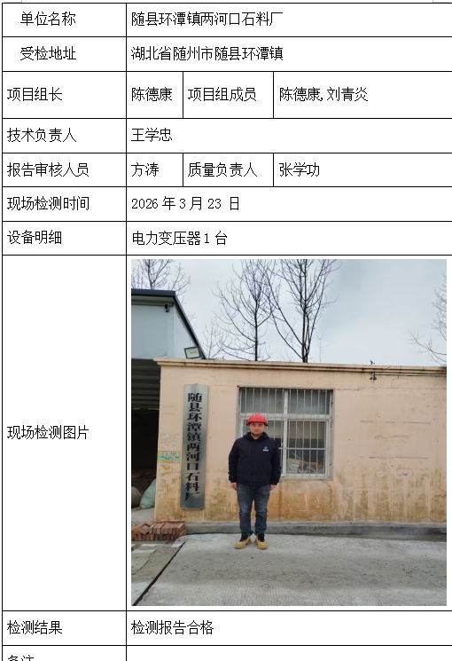 随县环潭镇两河口石料厂2026/04/082026年检测检验项目 30 上一篇: 鄂州市胜灵矿业有限责任公司下一篇: 随州市曾都区洛阳重晶石矿 相关推荐 宜昌兴臣爆破工程有限公司南沟磷矿项目部 2026/04/17 0 查看全文 湖北三鑫金铜股份有限公司 2026/04/17 0 查看全文 湖北信佳建设工程有限公司驻大杉树磷矿项目部 2026/04/17 0 查看全文 湖北三宁矿业有限公司挑水河磷矿东部矿段909工区 2026/04/17 0 查看全文 您好!请登录 点击取消回复 称呼: 邮箱: 点击这里取消回复。