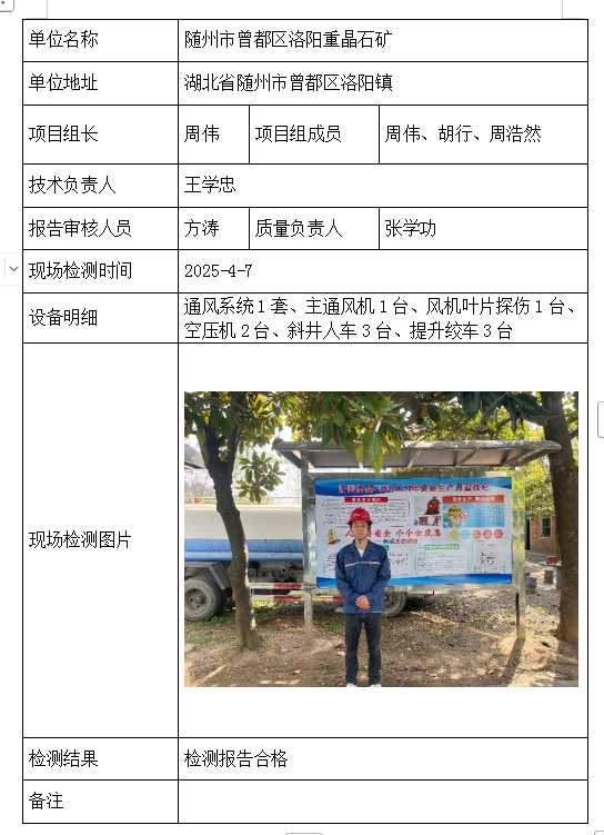 随州市曾都区洛阳重晶石矿2026/04/082025年检测检验项目 20 上一篇: 大冶有色金属有限责任公司铜绿山铜铁矿下一篇: 华新水泥(鹤峰)民族建材有限公司 相关推荐 长阳县勒石包方解石矿 2026/04/10 7 查看全文 大冶市灵乡正旺铁矿二采区 2026/04/10 4 查看全文 大冶市陈贵安船矿业有限公司 2026/04/10 9 查看全文 保康楚烽化工有限责任公司(楚烽磷矿) 2026/04/10 6 查看全文 您好!请登录 点击取消回复 称呼: 邮箱: 点击这里取消回复。