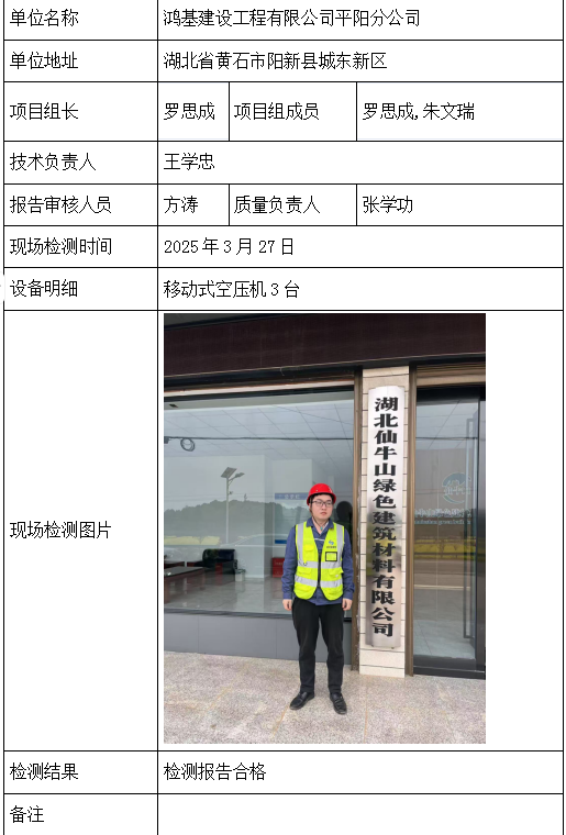 鸿基建设工程有限公司平阳分公司2026/04/082025年检测检验项目 20 上一篇: 大冶市刘仁八镇矿业有限公司大段硅石矿下一篇: 万安豪德实业有限公司(委托方:周口嘉浩机械租赁有限公司) 相关推荐 长阳县勒石包方解石矿 2026/04/10 7 查看全文 大冶市灵乡正旺铁矿二采区 2026/04/10 4 查看全文 大冶市陈贵安船矿业有限公司 2026/04/10 9 查看全文 保康楚烽化工有限责任公司(楚烽磷矿) 2026/04/10 6 查看全文 您好!请登录 点击取消回复 称呼: 邮箱: 点击这里取消回复。